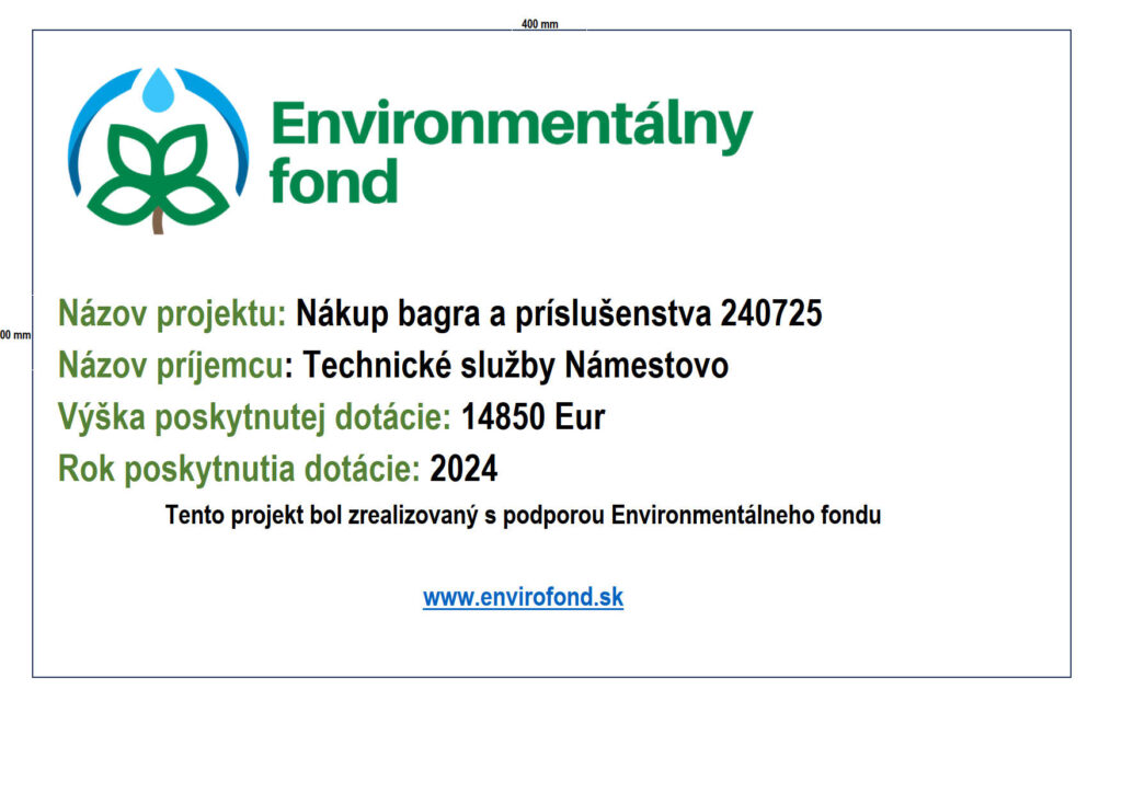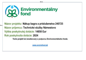 Suma dotácie Environmentálneho fondu 14 850 €.